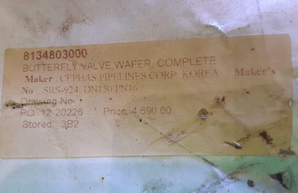 Cephas Pipelines Corp. Butterfly valve type SRS-.924 DN150 PN16